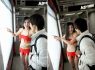 Festive bikini-clad volunteer randomly giving directions in Chinese subway