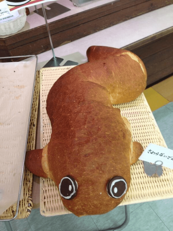 Clever bakers didn’t limit themselves to just copying the animal itself, though. Here’re a “grilled unagi on skewers” croissant. Unagi is usually seasoned with a thick soy-based sauce, but this bakery instead added chocolate or peanut glaze to their unagi Danishes.