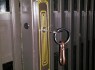 Here is a locked U-shaped latch which only allows the door to open a few centimeters to see outside or let in fresh air.