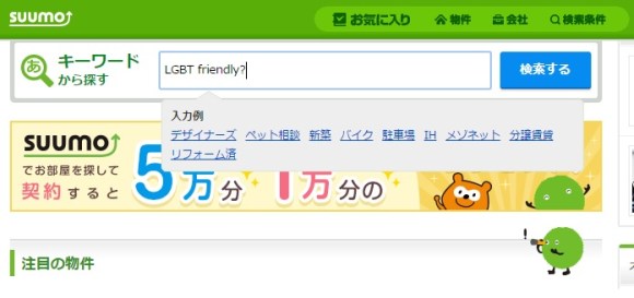 Realtors who cater to LGBT communities aren’t new to Japan, but having such a wide-reaching company like Suumo acknowledge the need to cater to a wider range of lifestyles is an important step. In addition to increasing awareness on a large scale, perhaps this will push property owners to realize that not only is accepting everyone the decent thing to do, it’s profitable!