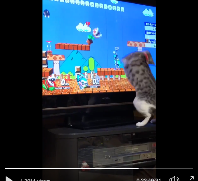 With gameplay that mixes immediate pick-up-and-play accessibility with deep strategic thinking cultivated by a dedicated competition community, Smash Bros. can be enjoyed by anyone, even if you’re lacking in experience with the series or simply the whole being-a-living-human-being thing. As a matter of fact, you don’t even have to be a human to enjoy the game, as shown by this pet cat in Japan who’s become playmates with the game’s recently released DLC fighter, Piranha Plant.