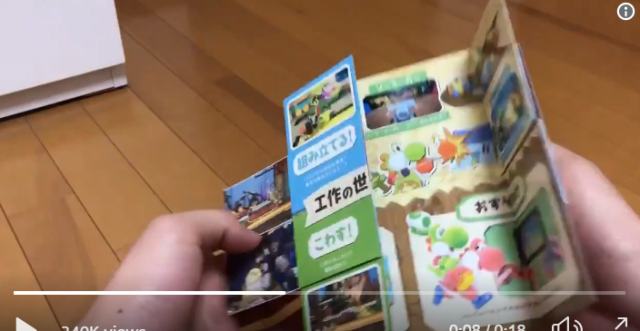 https://twitter.com/supino403/status/1107583274124103680As shown in the video from Twitter user @supino403, at first it looks like any other flat sheet of paper. However, the picture of Yoshio actually folds out from the center, revealing a four-by-four grid of screenshots from the game. But as you’re looking at them, you’ll notice there’s yet another fold, this time with flaps that swing upwards and downwards, and inside are four more screenshots showcasing various gameplay mechanics like building and breaking things with the in-game materials.