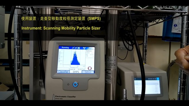 For his experiment, Okuda used a Scanning Mobility Particle Sizer (SMPS), whose hose sucks in the air of the room and measures its concentration of particles per cubic centimeter. Okuda set it to only look for the concentration of particles that are around the estimated size of the virus, which is believed to be between 20 and 100 nanometers in diameter.