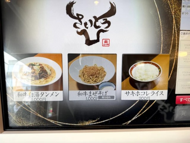 Men Zin Saito’s logo contains Saito’s name written in hiragana script (さいとう), but in a stylized rendering that resembles a bull’s horns. As you might be able to guess from this, their specialty is beef stock ramen, which is comparatively rare as far as ramen broth bases go.