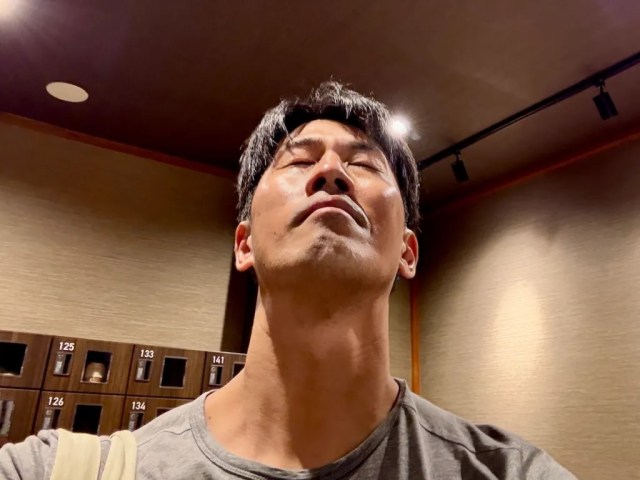 After his soak and sauna session, Masanuki was feeling mighty relaxed, but also powerfully thirsty, so he headed to the lounge for his free drink.