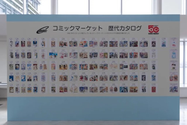 Inside the convention center were historical retrospective panels showing the catalog covers for all 106 Comikets that have been held so far, as well as artwork from their stamp rally activities.