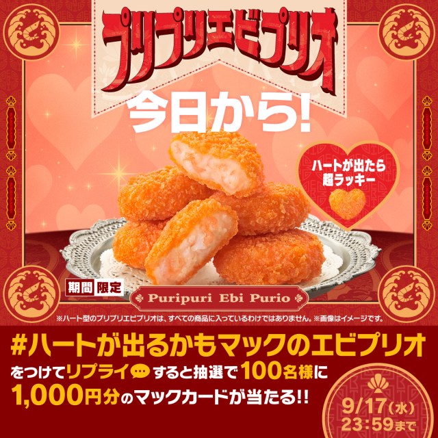 In the meantime, McDonald’s will also be holding a contest in honor of the Puripuri Ebi Purio. On 17 September, the official Twitter account of McDonald’s Japan will post a special contest tweet. If you are following their account and reply to that post with the hashtag #ハートが出るかもマックのエビプリオ (“You might find a heart in McDonald’s Ebi Purio”) before midnight, then you might become one of the 100 lucky winners of a 1,000-yen ($6.80) McDonald’s gift certificate.