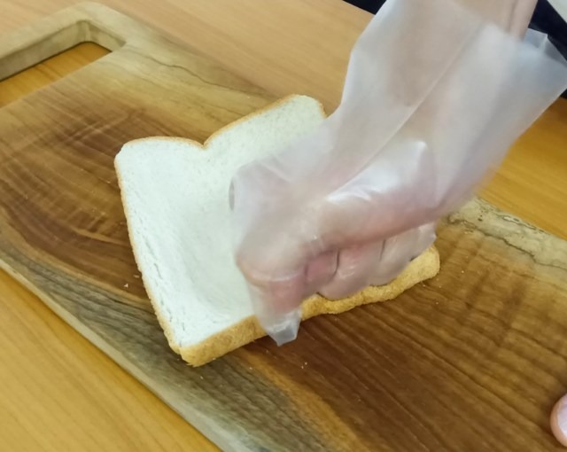 Now, it was time to turn his attention back to the sandwich as a whole. To start, he punched a slice of bread vigorously. It’s probably not necessary, but a nice way to work out some inner demons.