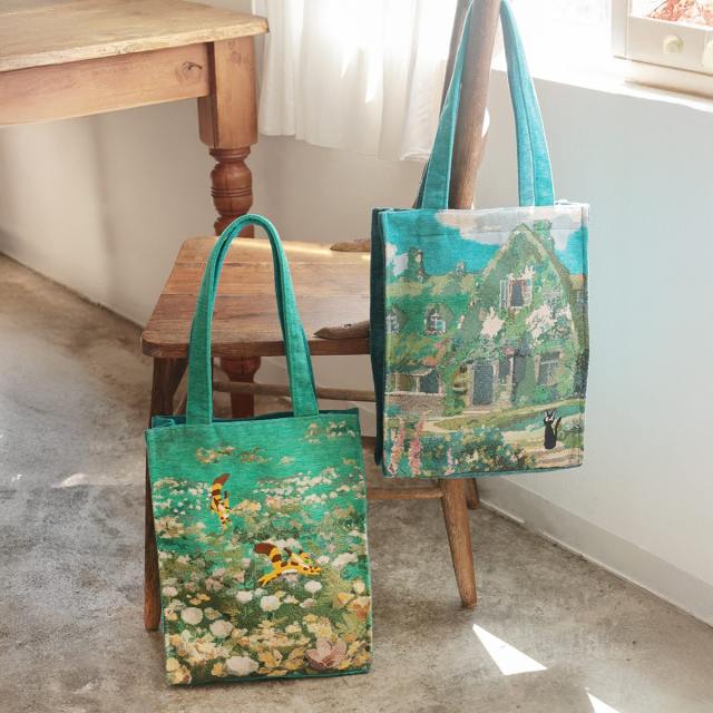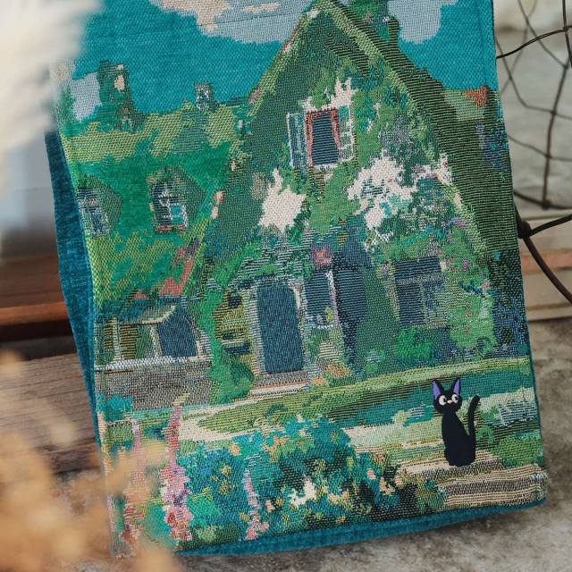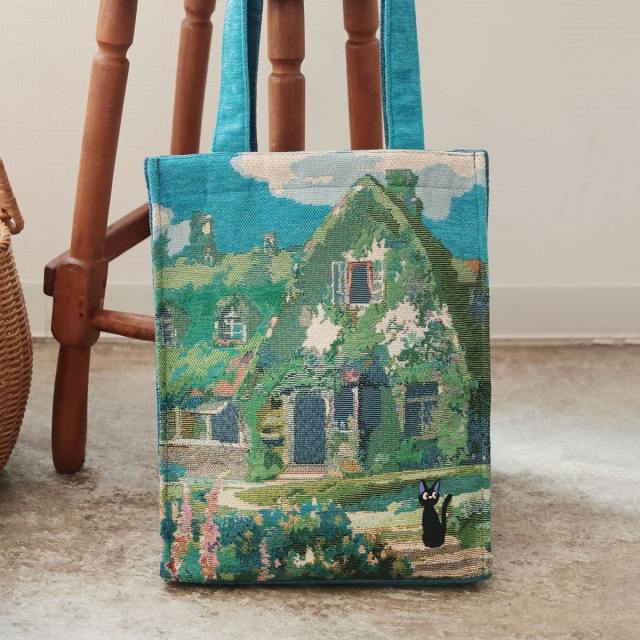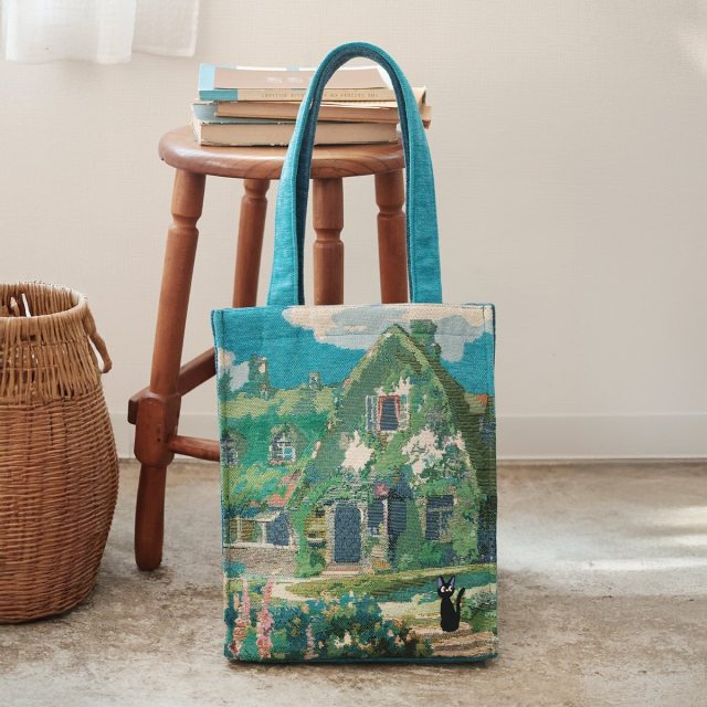 Called the Kiki’s Delivery Service Gobelin Tote Bag Jiji and Okino’s House, this bag places black cat Jiji in the foreground, with the beauty of the Okino Residence woven into the background of the scene.