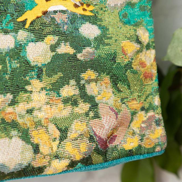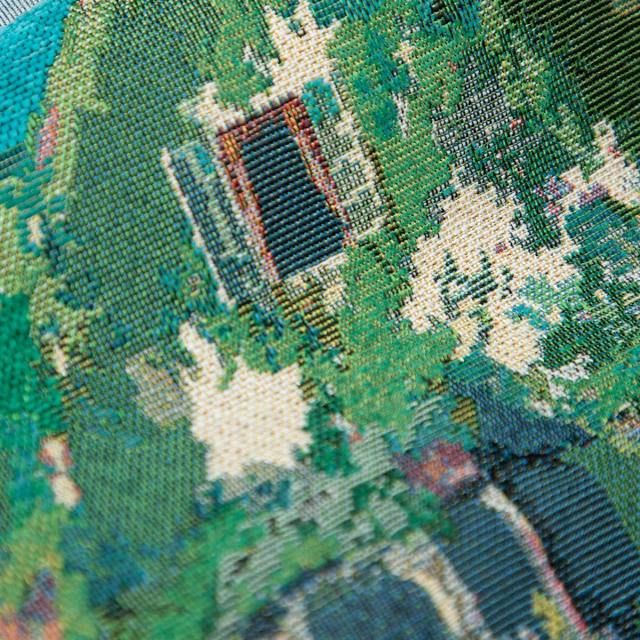 Made from Gobelin tapestry, a type of delicate woven fabric often used for upholstery and other decorative arts, these tote bags convey the painterly beauty of two films, perfectly capturing the mood behind them.