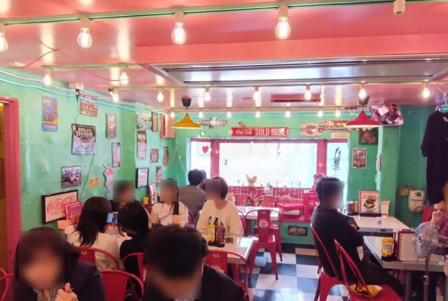 Called The God Diner, this retro-style eatery is actually fairly new, having opened just barely one year ago. It’s actually a sister restaurant to local motsuyaki (grilled organ meat) chain Yariki, which is why that name shows up on a number of the fake drink brands in the restaurant’s disguised-as-a-vending machine door.
