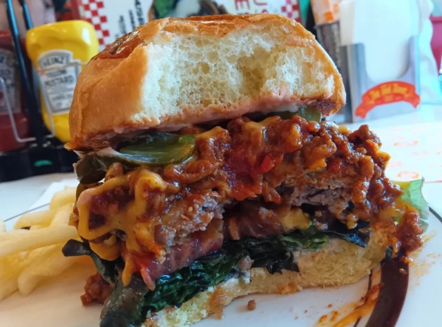 The Chili Cheeseburger was absolutely packed. The large bun was overflowing with cheese-drizzled chili meat, and the hamburger patty itself was luxuriously thick too.