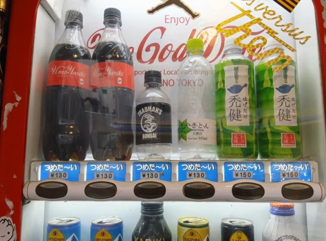 At first glance, it looks like a million other Coca-Cola vending machines you might come across in Japan. Step up for a closer look, though, and you’ll start to notice some unusual elements, and not just that the machine’s casing is covered in stickers.