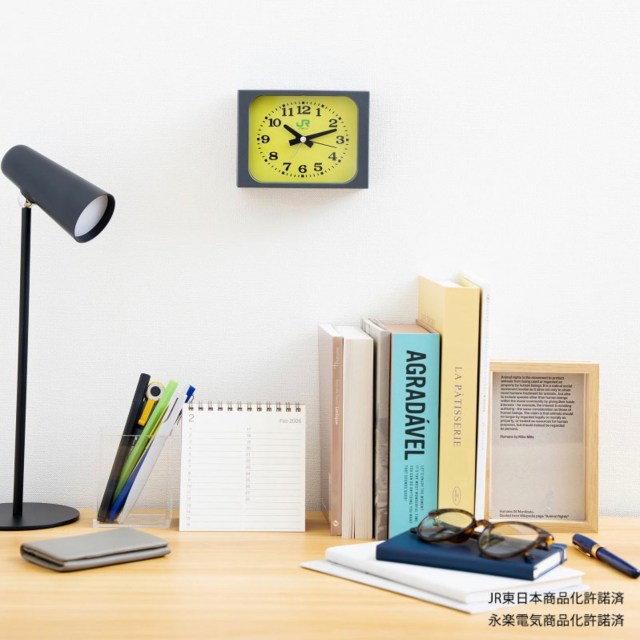 This station clock has been meticulously reproduced, with the familiar JR East logo, fluorescent dial, distinctively shaped hands, and even the frame all faithfully replicated. Measuring 13.4 centimetres in width, 10 centimetres in height and 4.1 centimetres in depth (5.28 × 3.94 × 1.61 inches), the clock is an ideal size for desks and bedside tables.
