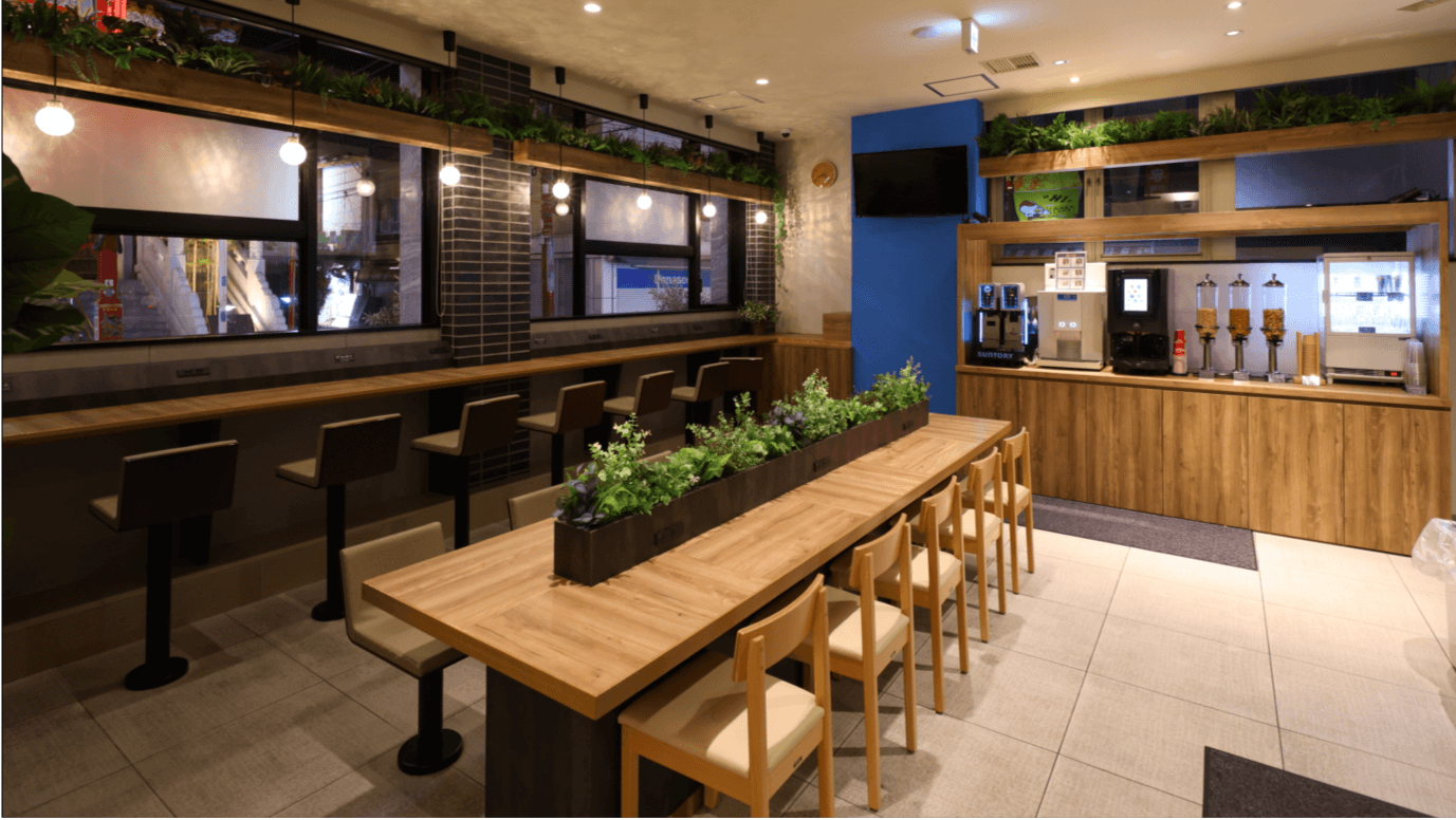 On the first floor, the DOMINISTA CLUB LOUNGE is open as a communal space outside restaurant hours. With counters equipped with power outlets, it’s ideal for working, making it especially popular among digital nomads and workation travelers.