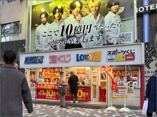 “Earn your own money, you jackasses!” host billboard appears above lottery ticket shop in Tokyo