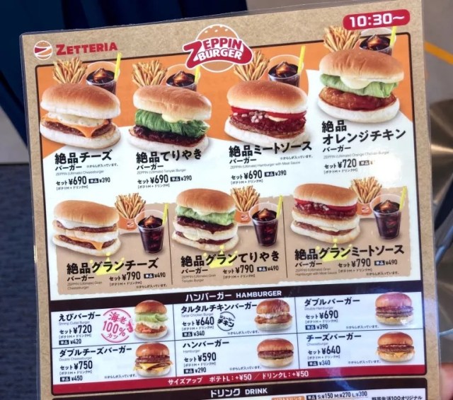 Zetteria’s menu shares many of the same names as Lotteria’s, but the presentation may vary. For example, Lotteria’s popular Zeppin Burgers can be found in Zetteria, but are sometimes differently shaped and use different buns. On the other hand, limited-edition sandwiches like Lotteria’s Okonomiyaki Burger were just as easily found at Zetteria.