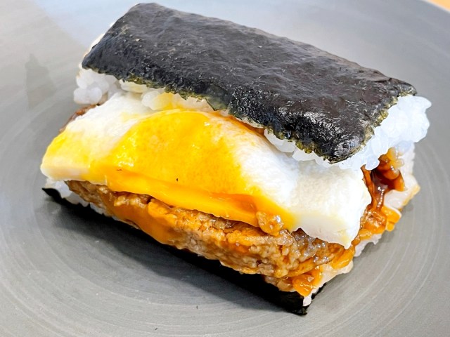 ▼ Beneath the rice and nori seaweed was a full hamburg steak coated in teriyaki sauce, as well as a fried egg-style omelette, and mayonnaise.