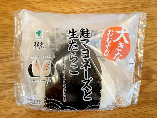 ▼ Family Mart’s “Large Rice Ball with Salmon Mayonnaise & Pollock Roe” (348 yen)
