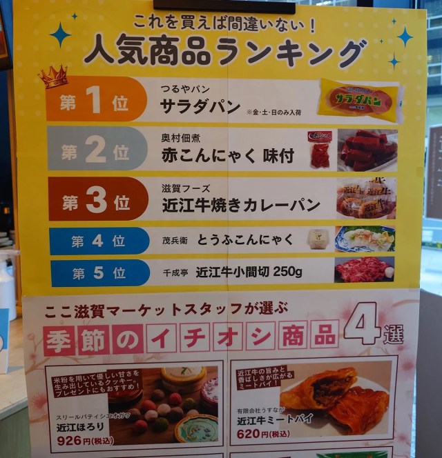 The most popular item out of Shiga Prefecture was Salad Bread, which seemed like it was bread meant to be eaten with salad. Tasuku had heard of it from TV segments, but knew little about it. The very reasonable price of 240 yen (US$1.50) likely contributed to its reputation.