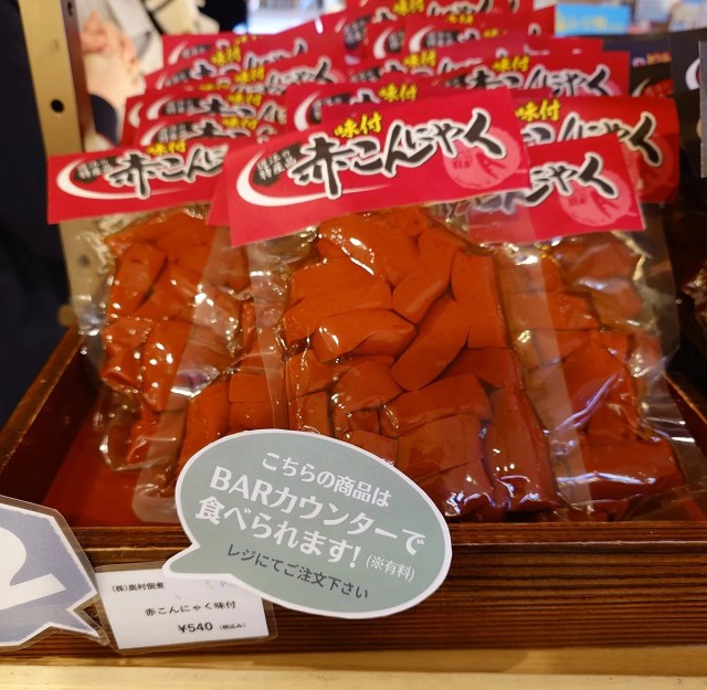 In second place was Flavored Red Konjac for 540 yen ($3.50). Konjac is a gelatinous plant-based food that’s usually grey or white, but perhaps only in Shiga can you find it with such a deeply red color. According to the display, it makes for a great bar snack.