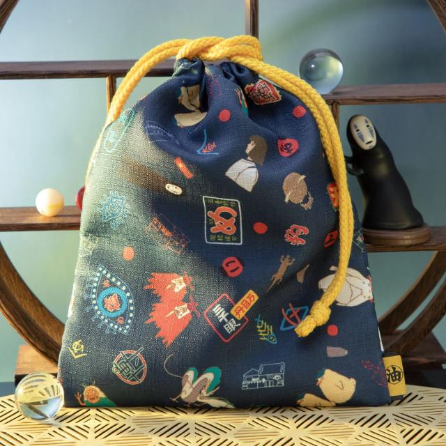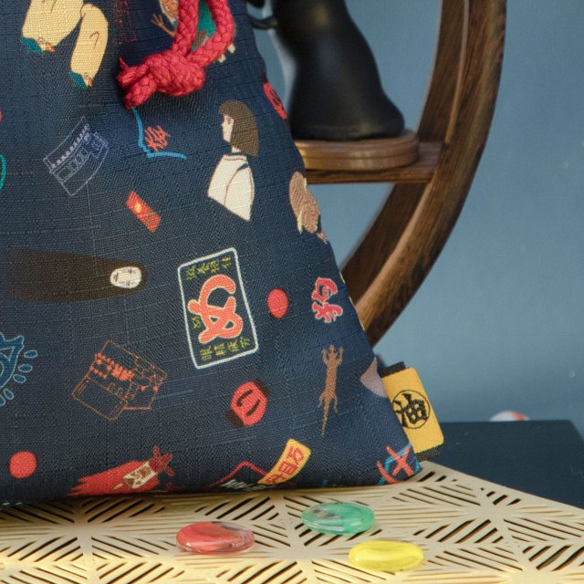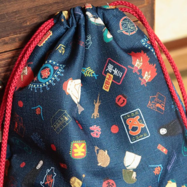 The pattern spreads its mysterious joy across three products called the “Spirited Away Mysterious Town Festival Series“, with the first product being the Large Drawstring Bag (1,870 yen [US$11.76]).