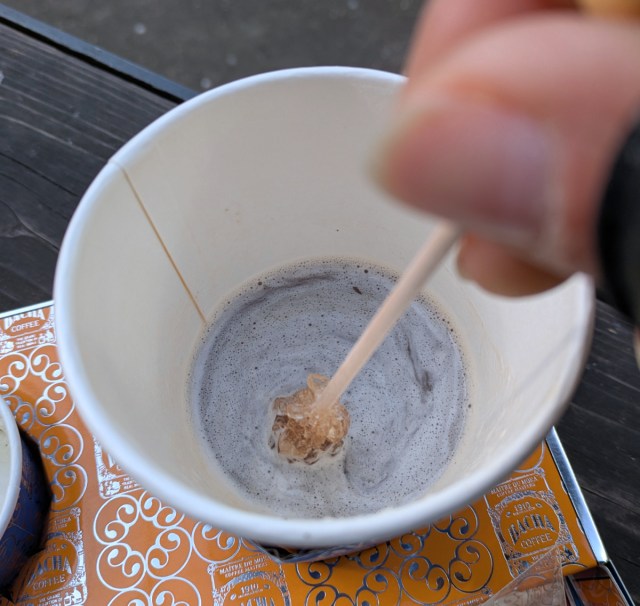 Swirling the sugar stick around allows you to adjust the sweetness to your liking as you go, but again, it didn’t help Mr Sato’s preferences for a strong, bold brew. If you order an iced coffee, you get an original glass straw, so Mr Sato decided to return in future to give that a try.