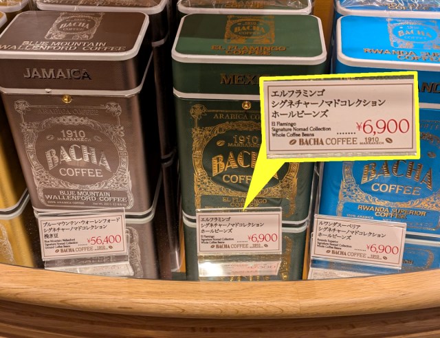 ▼…tins of coffee beans for 6,900 yen and 56,400 yen ($369.80)!