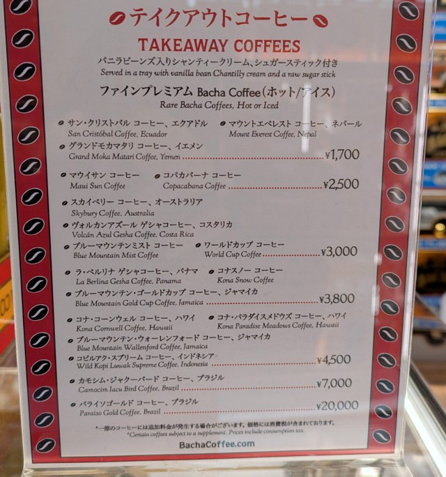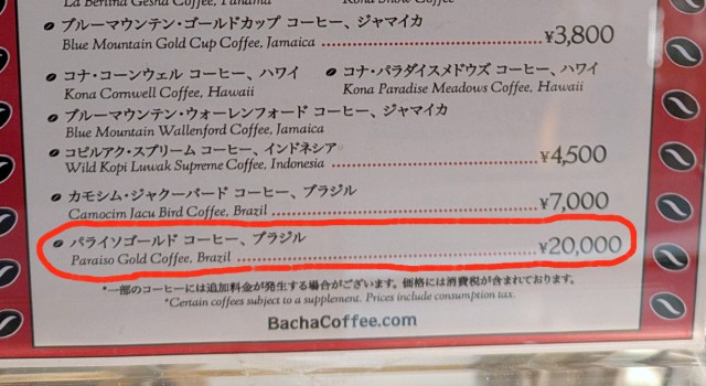 ▼ At the very bottom of the list was the most expensive of the lot – a Paraiso Gold Coffee from Brazil, priced at 20,000 yen.