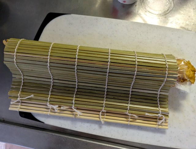 Now this was looking like an ehomaki! Ready for the final step, Mr. Sato rolled up the makisu mat and made sure everything was pressed, but not smooshed, together.