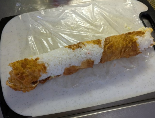 Finally, it was time to see how our KFC sushi roll had turned out, and…