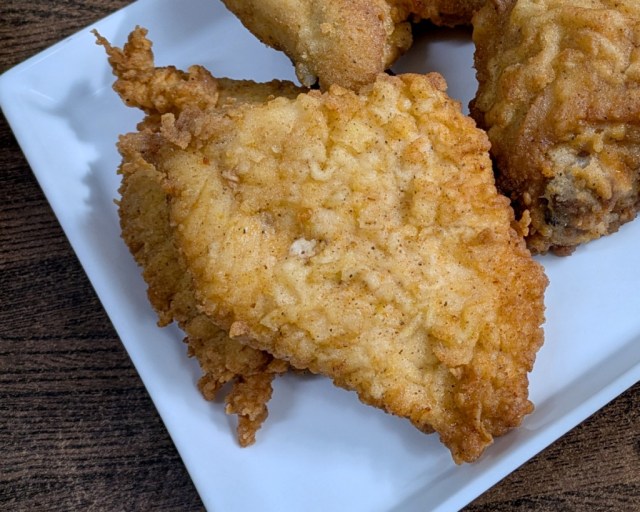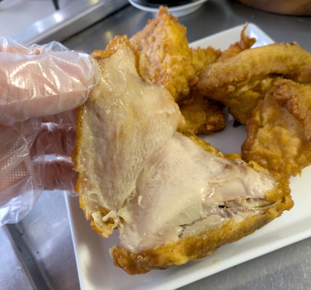 Next came the meat from the pieces of fried chicken he’d gotten the skin from.