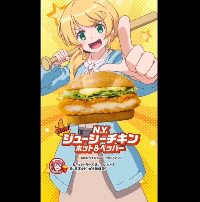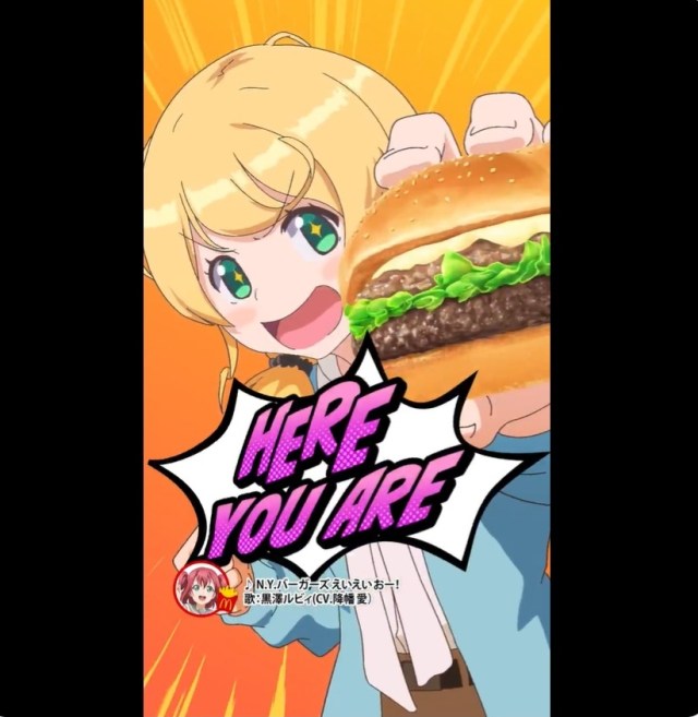 You see, with McDonald’s Japan getting set to launch a trio of new sandwiches collectively called the “New York Burgers” line, they wanted to recruit a famous anime character who’s an American, and Ms. Baker was apparently very enthusiastic about the opportunity, as can be seen in the video below.