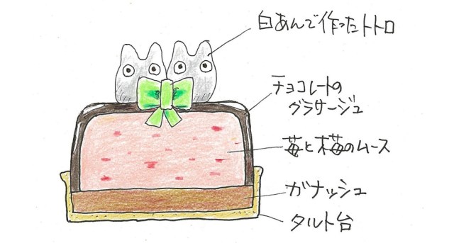 Shirohige’s Cream Puff Factory, the Tokyo sweets shop run by relatives of Studio Ghibli co-founder Hayao Miyazaki, has revealed its lineup of special Valentine’s Day chocolate treats for this year. First up is the Small Totoro Pair Cake, a chocolate tart with a layer of creamy ganache at the bottom, above that a strawberry mousse with bits of strawberry mixed in, and then an enticingly shimmery chocolate glacage glaze. Sitting atop the cake is a happy Small Totoro couple made out of white an (sweet bean paste), accompanied by a chocolate ribbon that makes this both a mouthwatering and heartwarming gift, whether you’re presenting it to someone else or treating yourself.