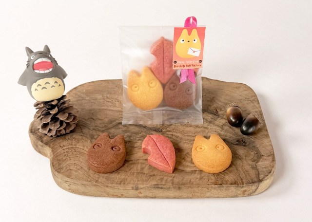 If you’re looking for something lighter, but still sweet, to nibble on, there’s a three-piece Totoro cookie set, with Totoros in both standard buttery and chocolate biscuit forms, plus a raspberry-flavored leaf cookie (that looks like some forest dweller has already taken a little bite out of it).