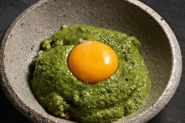 And while the portion size isn’t large enough to make a full meal out of, you can add a side order of Matcha Tsukimi Gohan, a green tea-enhanced reimagining of Japan’s tamagokakegohan, in which you crack a raw egg into a bowl of piping hot white rice so that the heat of the grains just barely cooks the egg.