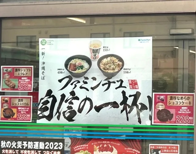 ▼ An ad for the Faminchu (“ファミんチュ”) range of foods at a Family Mart in Okinawa.