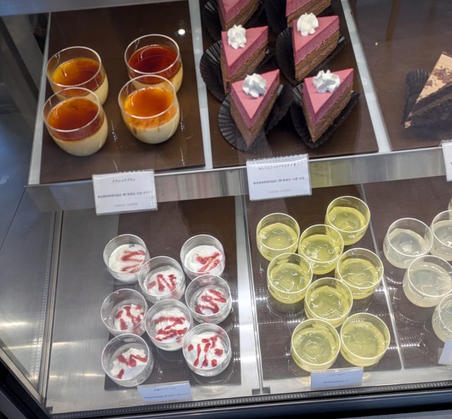 The remaining pieces of cake were (pictured below clockwise from upper-left) an imperial villa strawberry cheesecake (a seasonal variation of the original), unbaked cheesecake, chocolate cake, and nasu white (fromage blanc) cake. None of them matched the flavor impact of the first two we had tried. However, they all had their unique characteristics that are sure to appeal to different kinds of sweets lovers.