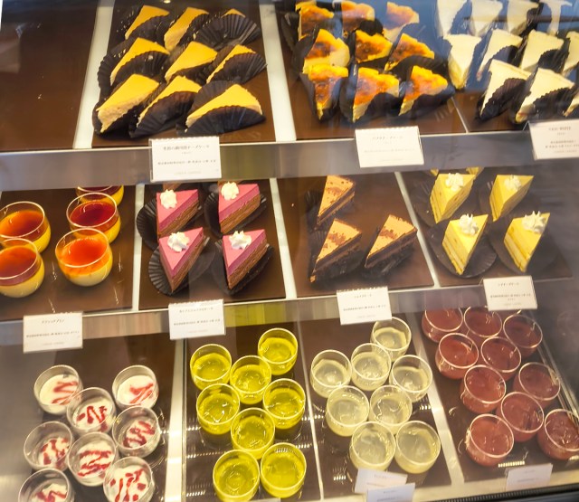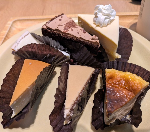 We made our way to the counter to order the first round. It was only logical that we start with cheesecakes based on the name of the store, so we chose four kinds on the top row and two in the middle row of the display case to kick things off.