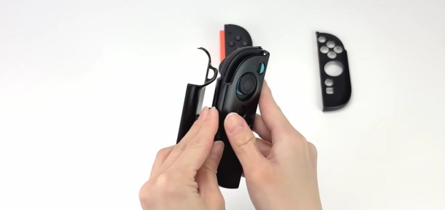 Rather than a complete stand-alone controller, the Katate Grip SW2 is a multi-piece frame into which you fit the left and right Joy-Con 2s after disconnecting them from the Switch 2’s main unit. After snapping the two central pieces together, you slot a Joy-Con 2 into each, then place a cover over them to lock them in place.