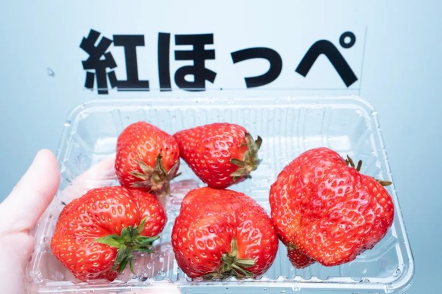 ▼ Benihoppe strawberries: 537 yen ($3.46) a pack