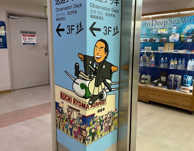 With his image of energetic enthusiasm for new ideas, Ryoma actually lends himself pretty well to cute artistic interpretations, and this illustration shows up on a lot of the airport’s signage.