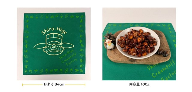 And if you’re looking for a gift with an extra dash of mature sophistication, and also one that’ll leave part of the present for after you’ve eaten everything, Shirohige’s also has a 1,600-yen caramelized nut selection with picans, almonds, cashews, and macadamia nuts that comes wrapped in a handkerchief featuring the bakery’s mascot character.