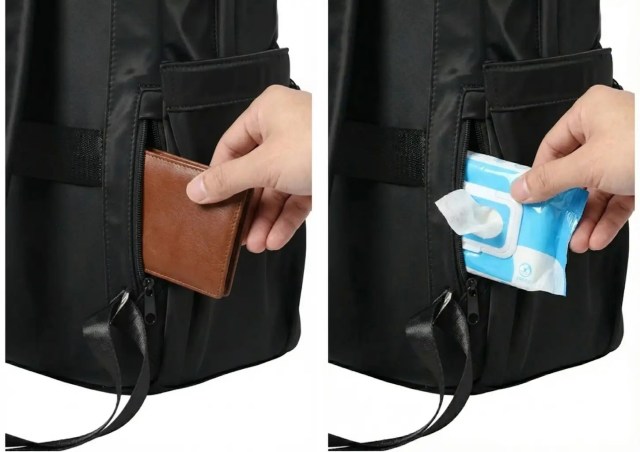 The bag, which Yofuku no Aoyama calls the “Multi-rucksack,” has a number of useful design elements, like an exterior pocket that’s sized and positioned for fast access to a commuter pass case or packet of wet tissues.