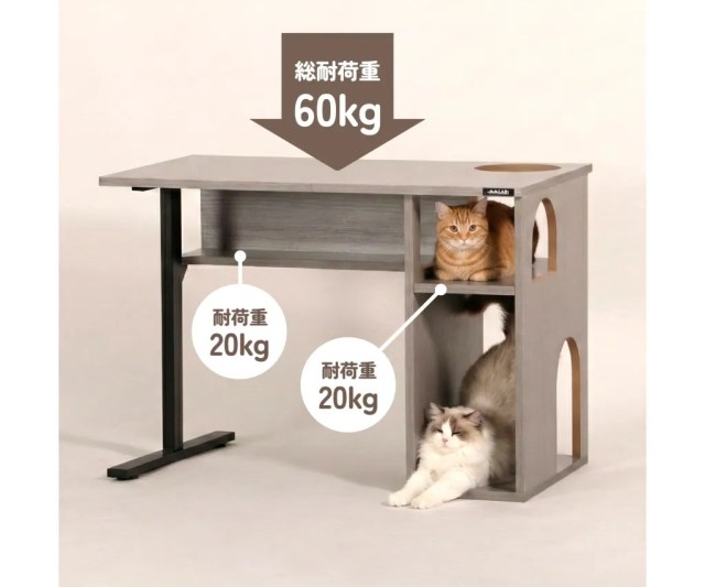 Neko is the Japanese word for cat, so you could also call this the Cat House Desk, but again, this piece of furniture is for people who own pets, not bordellos. Bibilab proudly built in numerous design points to help promote harmonious sharing between you and your kitties, starting with a two-tier cat space along the right side of the desk, each with side-access portals and a weight capacity of 20 kilograms (44 pounds) for the top section.