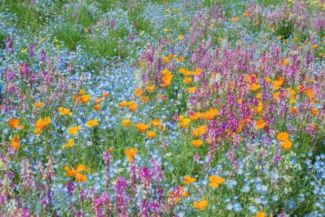 Rapeseed, tulips, nemophila, and over a million poppies line up for a floral relay.