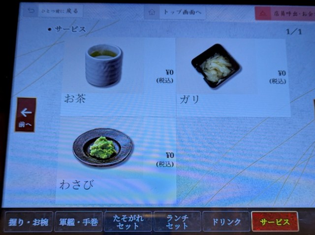 ▼ You also use the tablet to ask for green tea, wasabi, and ginger, which are all free.