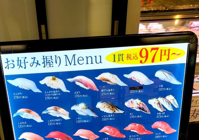 Prices start at 97 yen (US$0.65) per piece, which is a great deal for non-conveyor belt sushi, so great that we weren’t about to pass up the chance to get some for ourselves.
