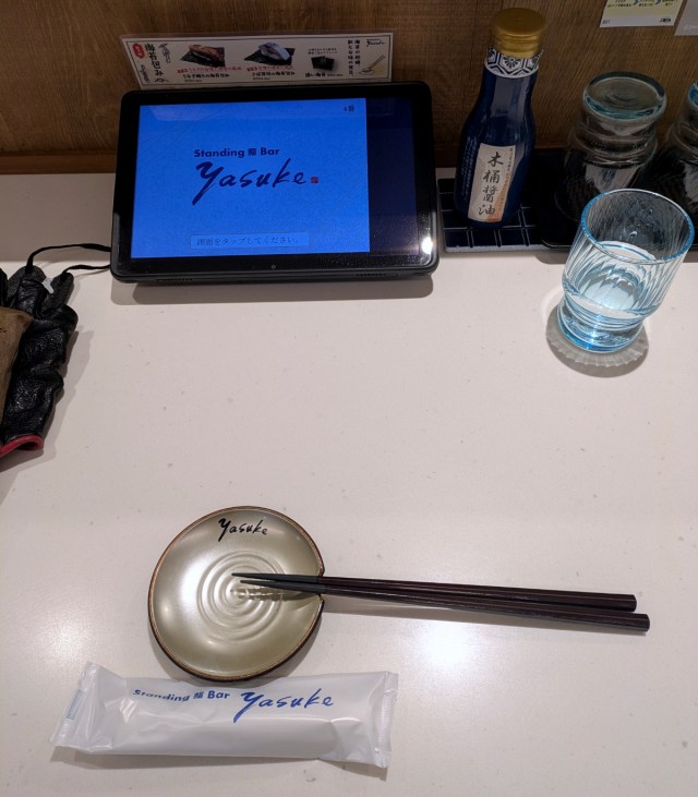With no chairs, the interior actually felt more spacious than the restaurant’s modest amount of floor space would otherwise have you expecting. You place your order through a tablet, and we especially liked the clever design of the soy sauce dish, which allows it to do double duty as a chopstick rest.