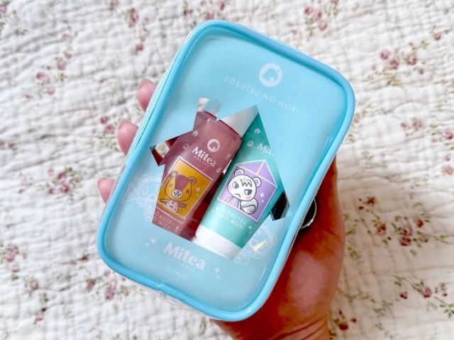 And rounding things out is the “Mini Size Kit” (1,650 yen), a travel friendly pouch with compact containers of Cleansing Serum Oil and Repair Milk, so that Stitches and Marshal can come along on your next overnight trip.